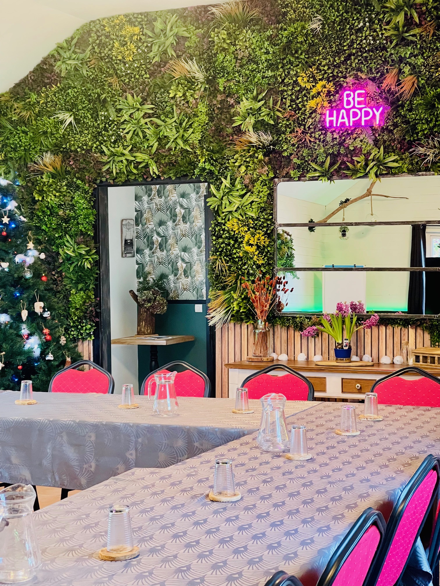 Notre salle de réunion principale est modulable et peut être configurée selon vos préférences (en U, en théâtre, en îlots). Pour les groupes de plus grande taille, nous disposons de solutions (Location de Barnum) avec nos partenaires locaux pour répondre à votre demande.